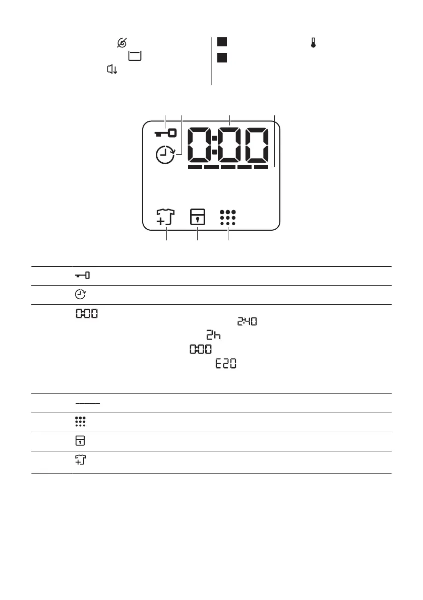 • Indication of total operating hours of the appliance. Refer to the 'Operating