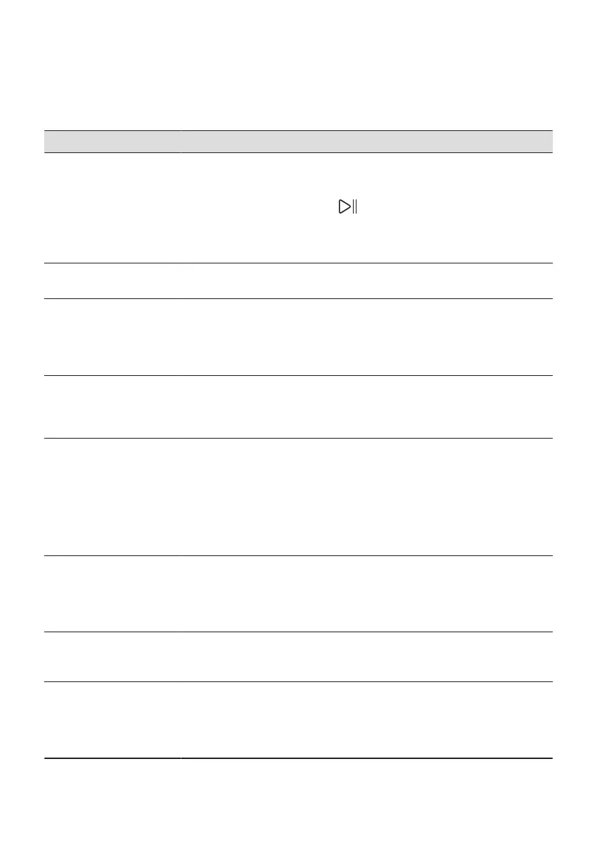 In case of different problem with the appliance check the table below for
