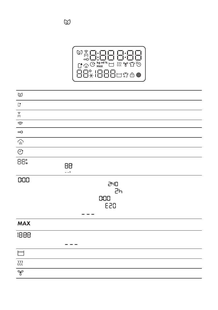 • Ohjelman kesto (esim. , pesu- ja/tai kuivausvaihe).