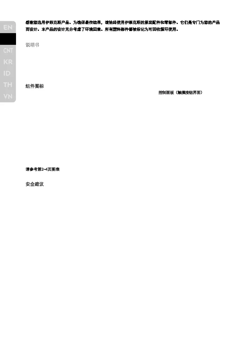 感谢您选用伊莱克斯产品。为确保最佳结果,请始终使用伊莱克斯的原装配件和零部件。它们是专门为您的产品