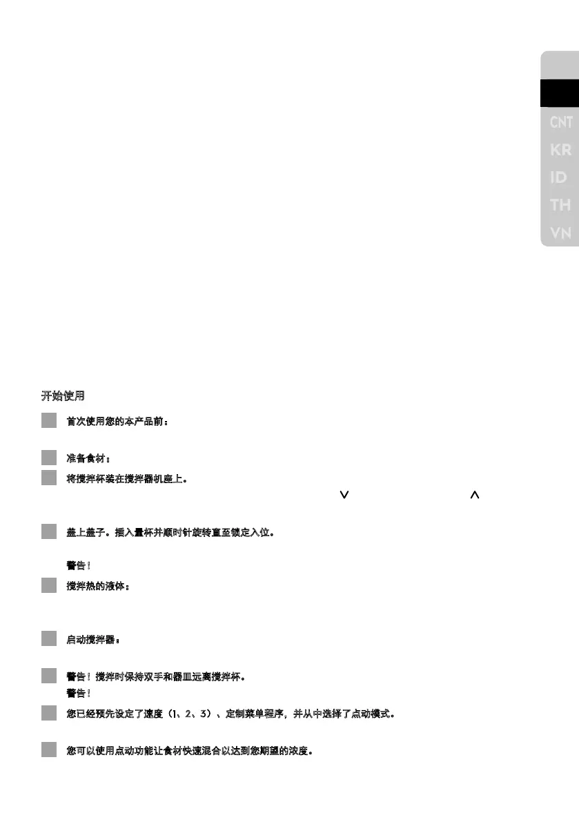 警告!搅拌时保持双手和器皿远离搅拌杯。
