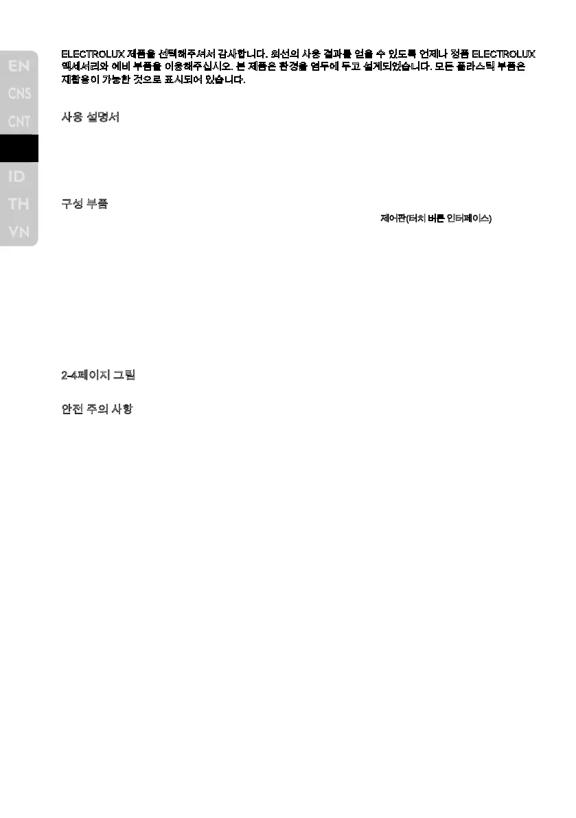 ELECTROLUX 제품을 선택해주셔서 감사합니다. 최선의 사용 결과를 얻을 수 있도록 언제나 정품 ELECTROLUX