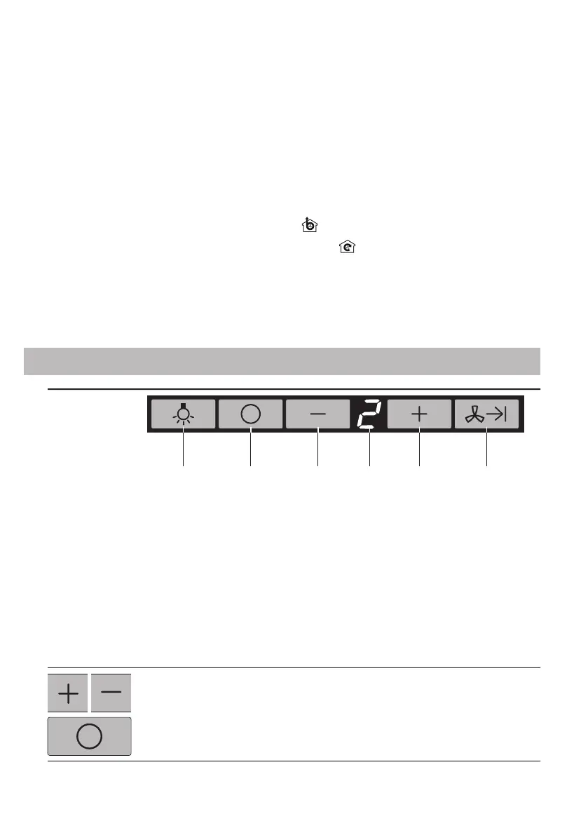 1. Appuyer sur la touche 5, la hotte se met en marche à la vitesse 1.