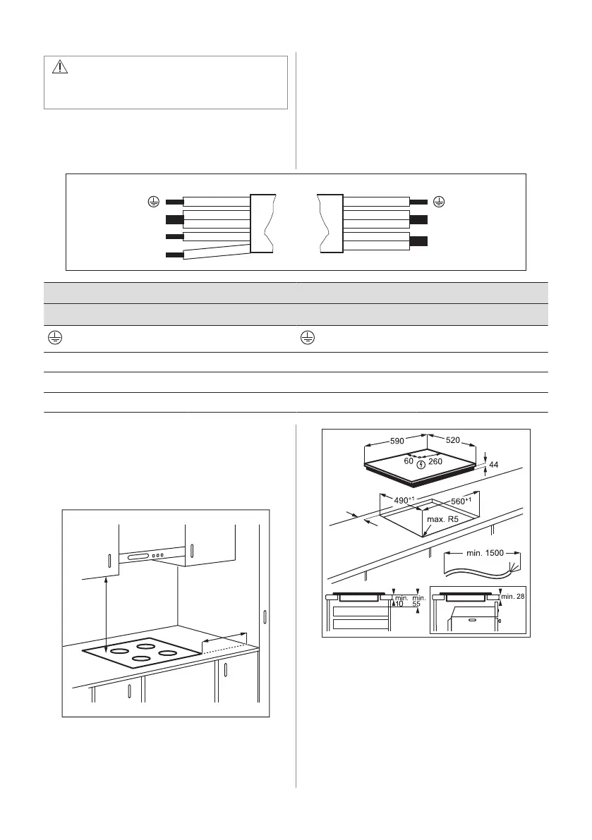 Hvis du installerer platetoppen under en