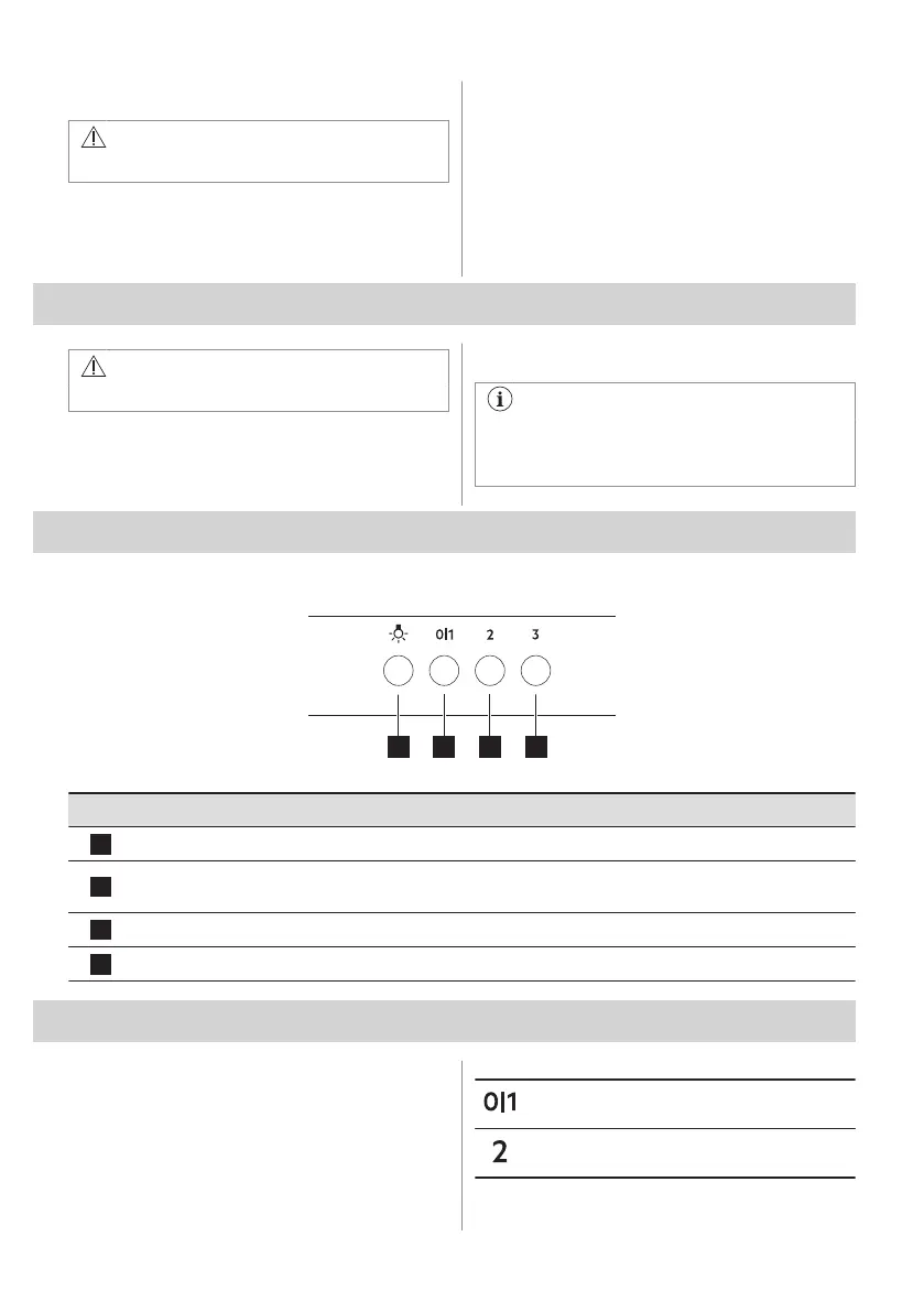 Første hastighed / slukket Motoren skifter til første hastighedsniveau. Et tryk mere slukker for