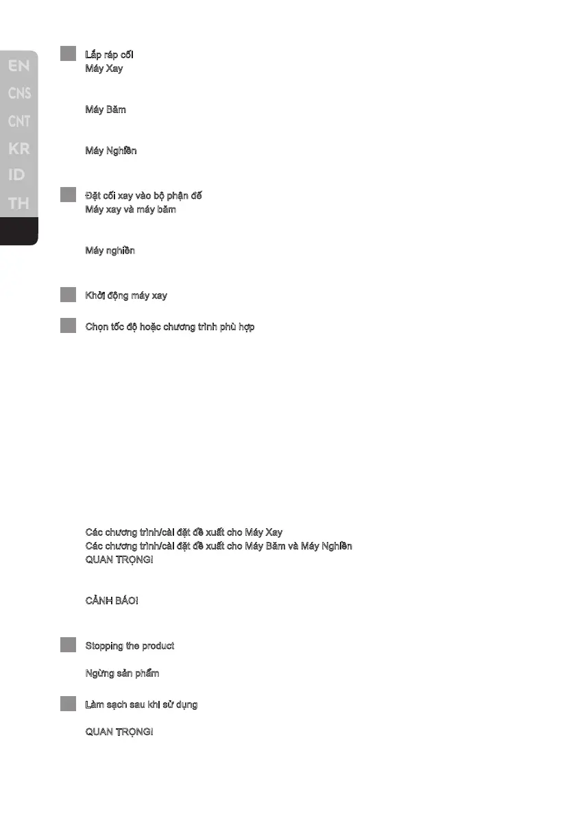 sản phẩm. Để tay và các dụng cụ tránh ra cối xay khi đang xay.