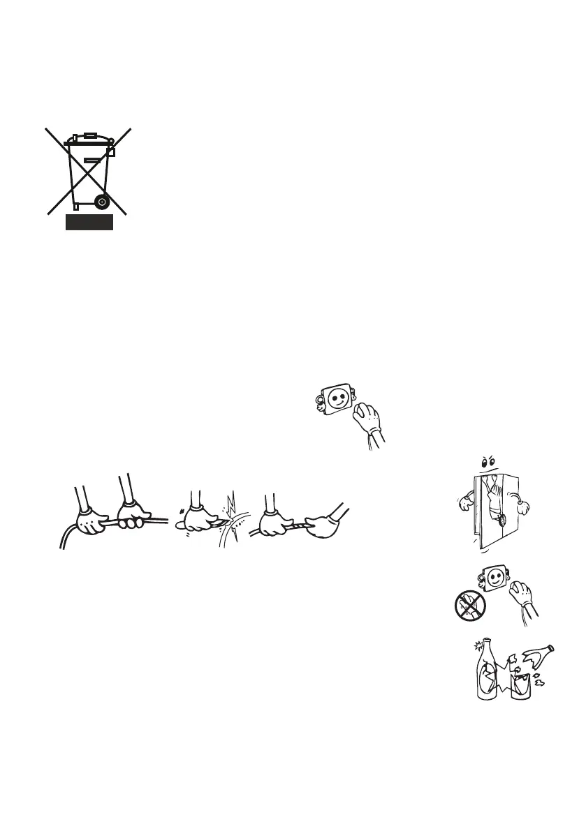 • Ikke plug-inn eller ut pluggen fra stikkontakten med våte hender for