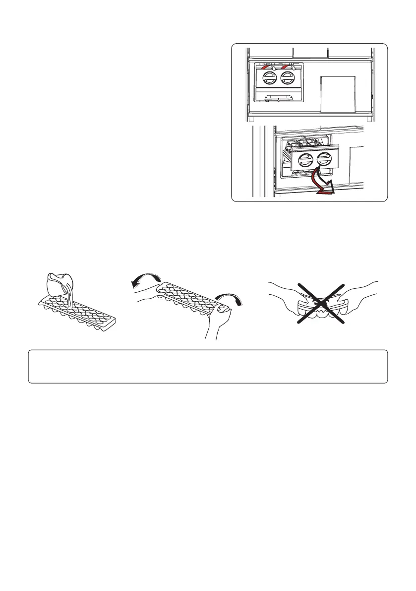 • Öppna frysskåpet och ta fram is-kubsfacket.