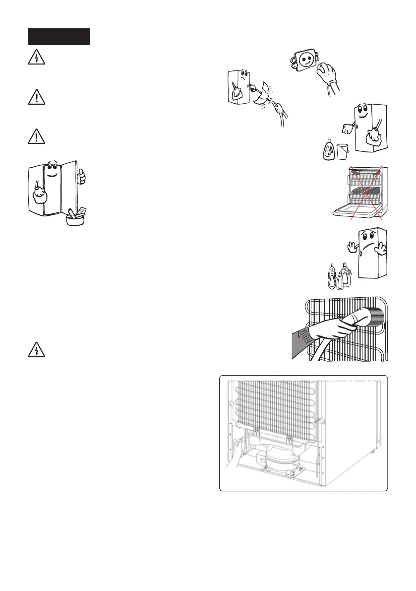 Se till att ditt skåp är urkopplat vid rengöring.