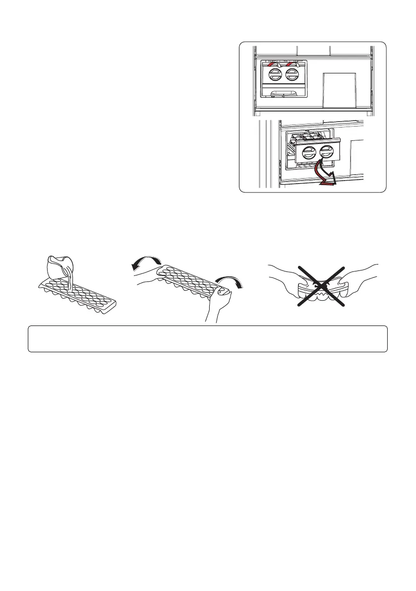 • Kun vesi on täysin jäätynyt, voit taivuttaa rasiaa alla olevan kuvion osoittamalla tavalla