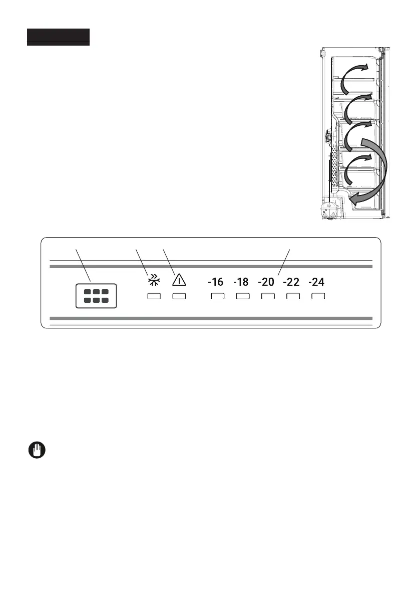 Med denne knap kan fryserens temperatur indstilles. Tryk på denne knap for at indstille