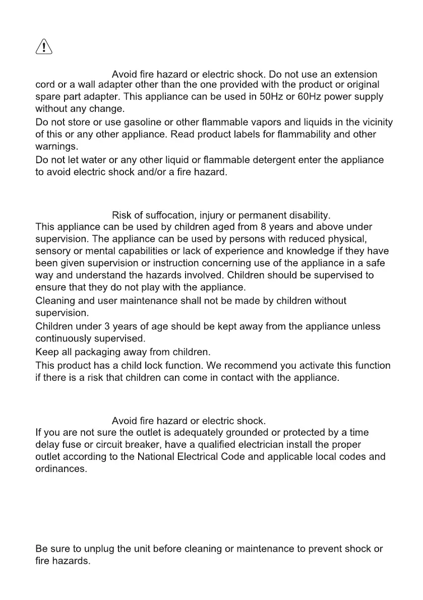 user serviceable parts. Always call an authorized Electrolux servicer for repairs.