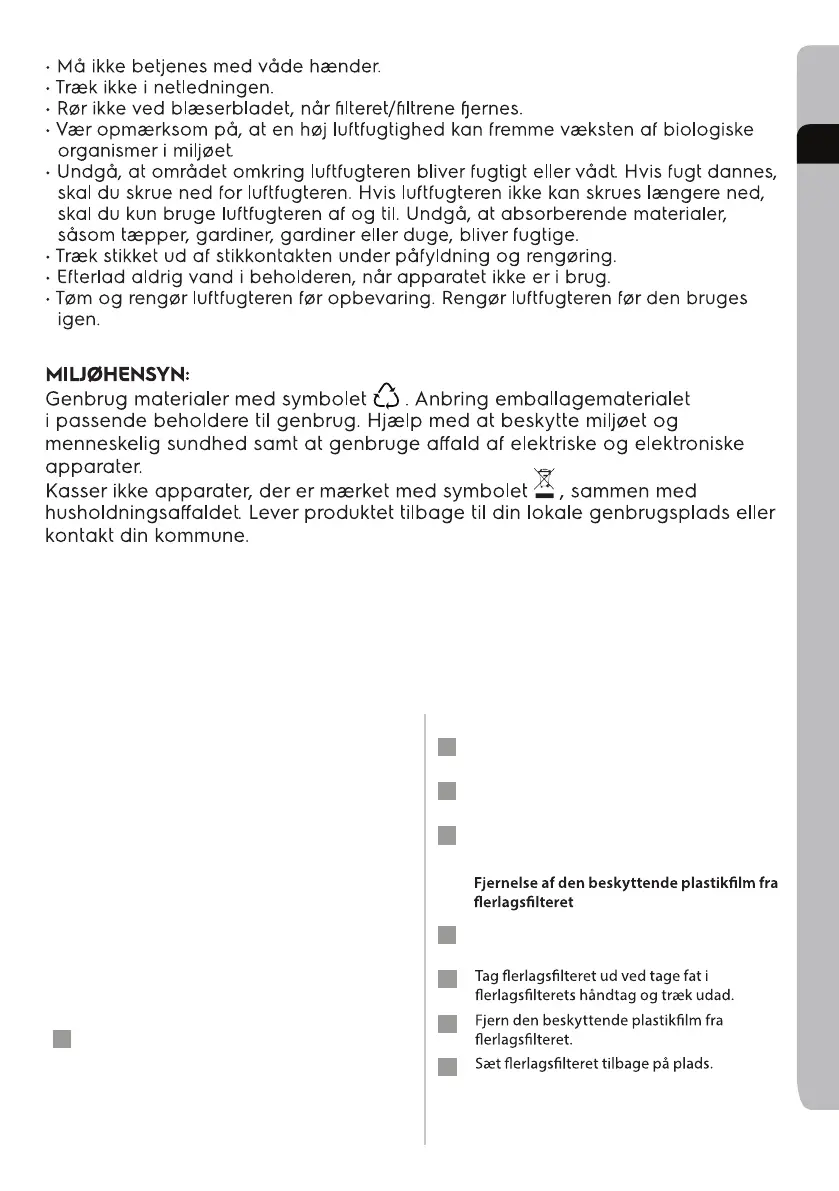 • Kontrollér, at alle de beskrevne dele medfølger.