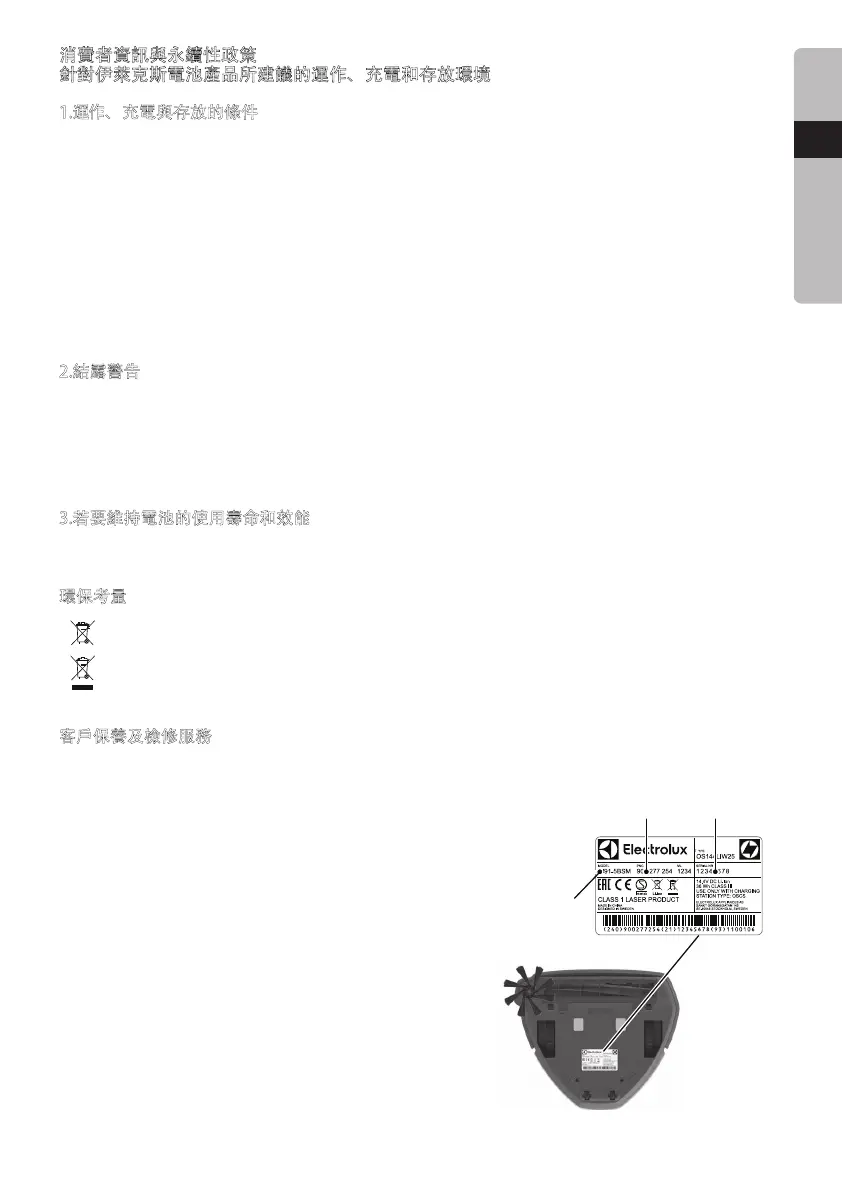 · 在長時間收儲之前。(在長時間收儲之前,請先充飽電後,將電池從機器人吸塵器上取出。)