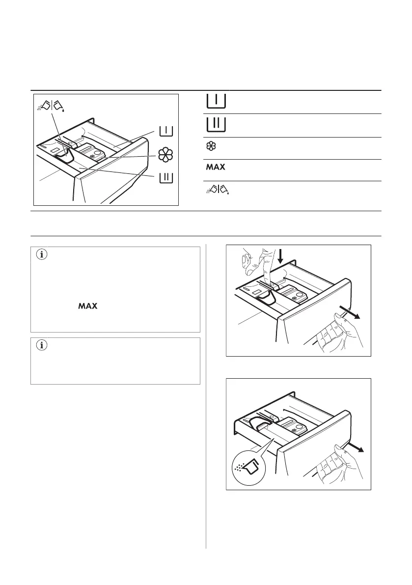 2. Fyll vaskemiddelet og tøymykneren i de rette kamrene.