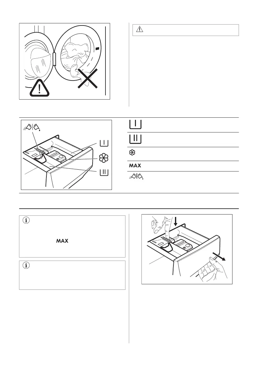 2. Lisää pesuaine ja huuhteluaine oikeisiin lokeroihin.
