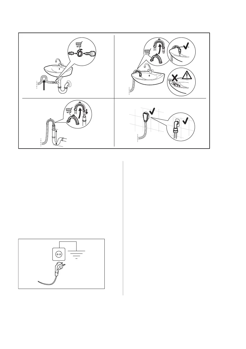 Mögulegt er að tengja tæmingarslönguna á mismunandi vegu: