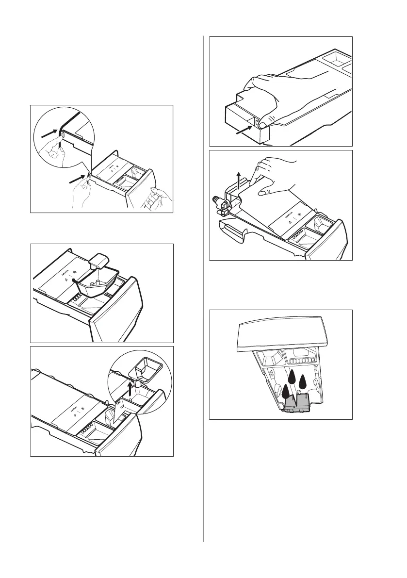 1. Öppna tvättmedelsfacket. Tryck ner