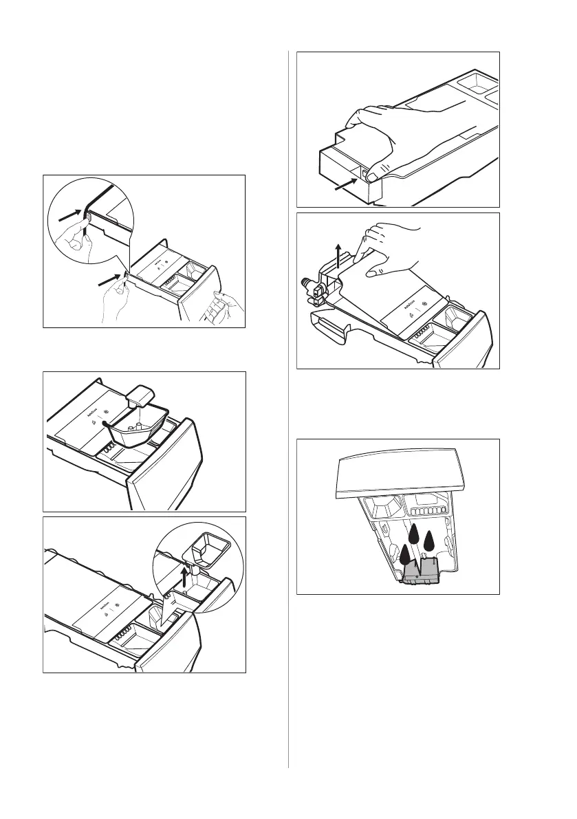 1. Åbn sæbeskuffen. Tryk på låsen, som