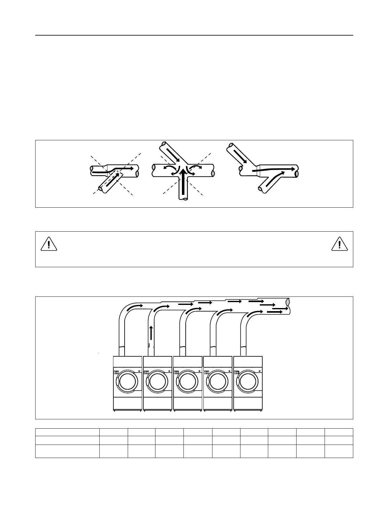 When several machines shall use the same exhaust duct the exhaust duct must increase after each machine. The