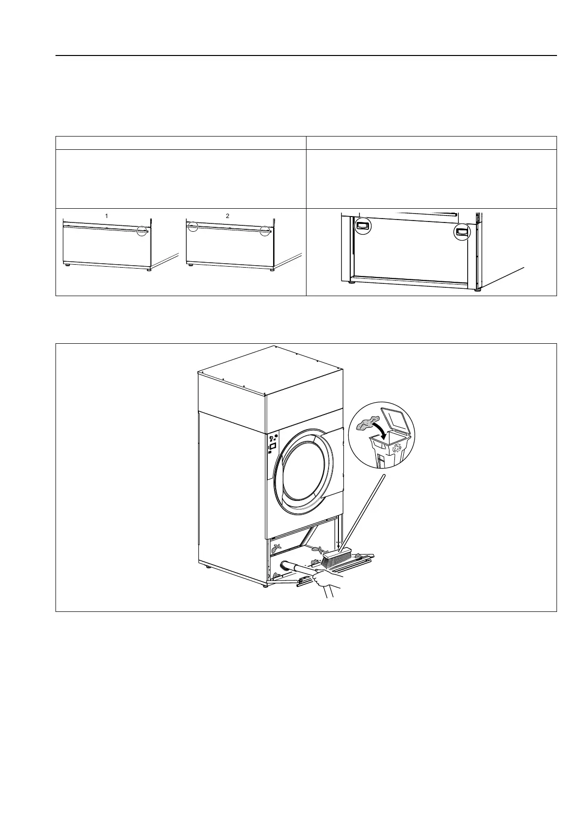 Use a long-handled brush or a vacuum cleaner to remove the lint and dust. The illustration show a standard machine