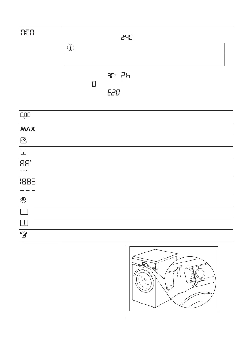 Maximum load indicator. The value is shown for three seconds after programme selection,