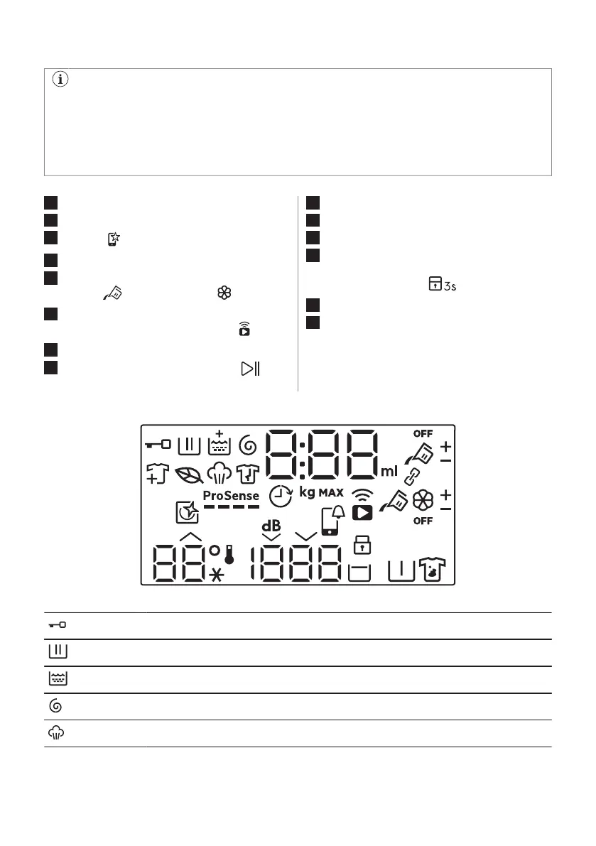 Spia di scarico e centrifuga. Lampeggia durante la fase di scarico e centrifuga.