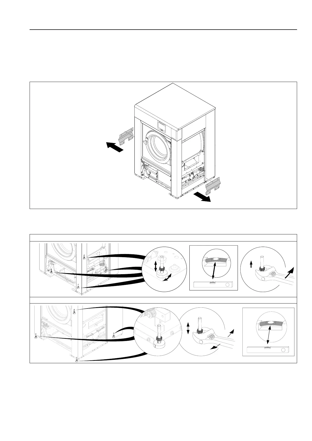 When the machine is placed in final position, mount the supporting feet. (If the machine is not to be mounted on a