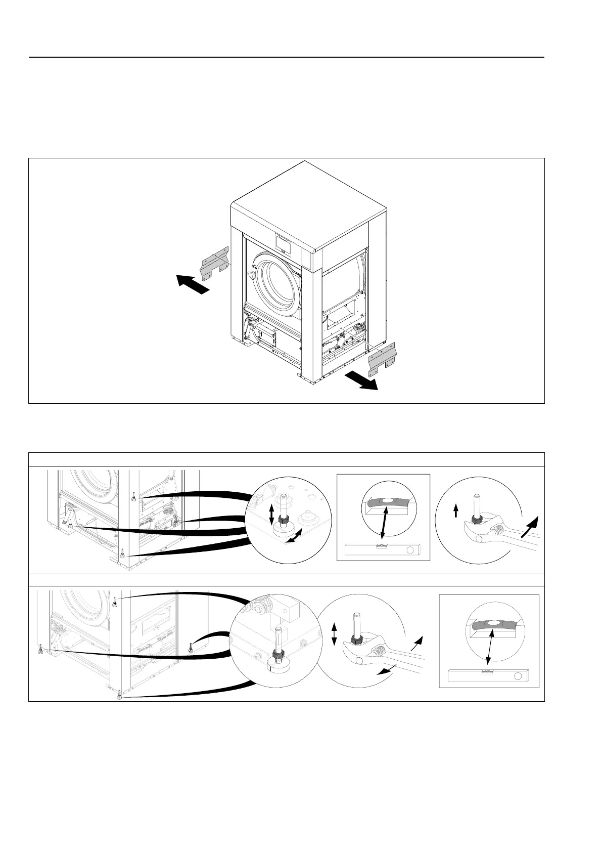 portsteunen. Bewaar de transportsteunen als de machine in de toekomst nog eens verplaatst moet worden.