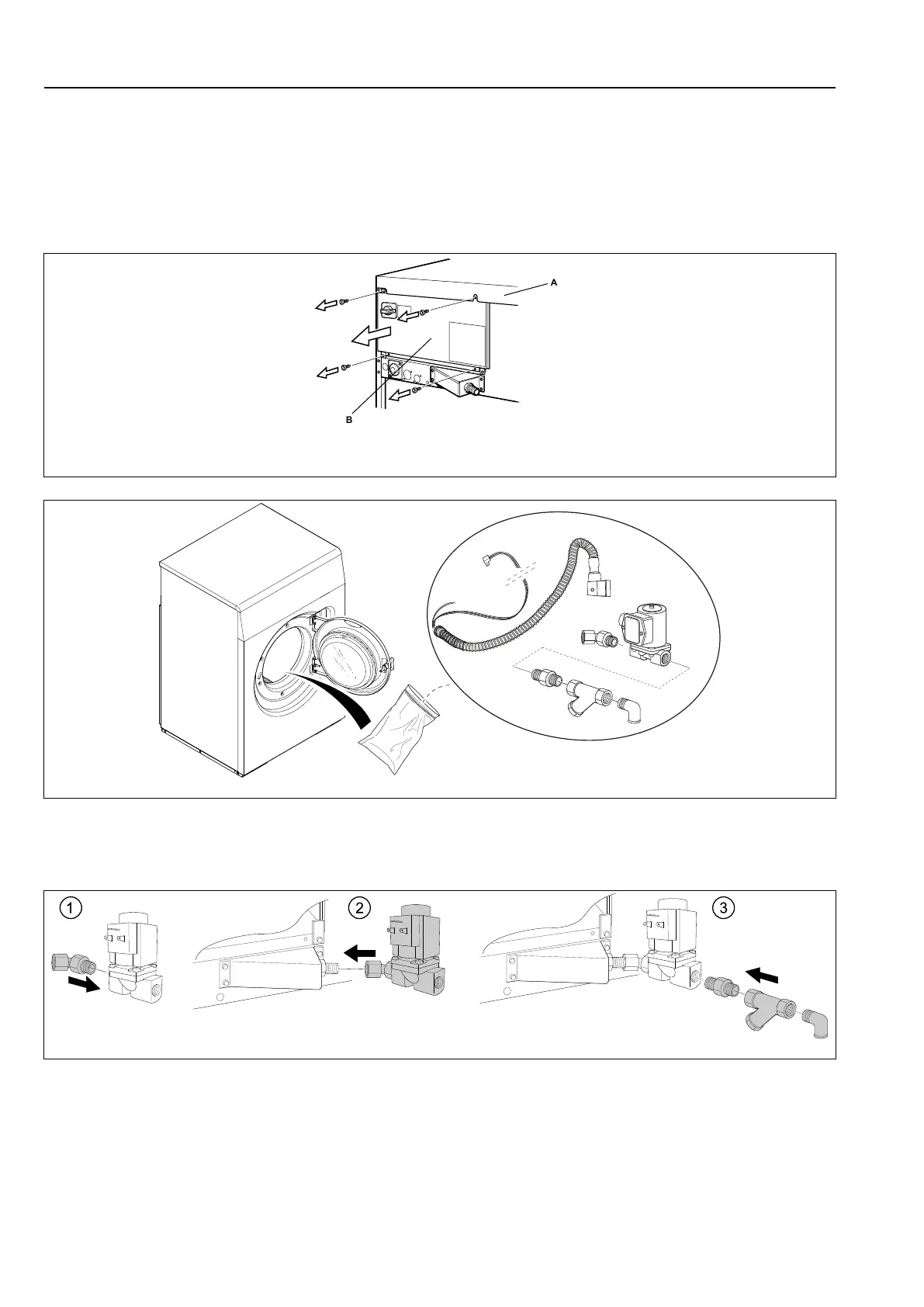 Bevestig de nippel op de stoomklep. Bevestig de stoomklep op de machine. Bevestig nippel, zeef en bochtpijp. Let