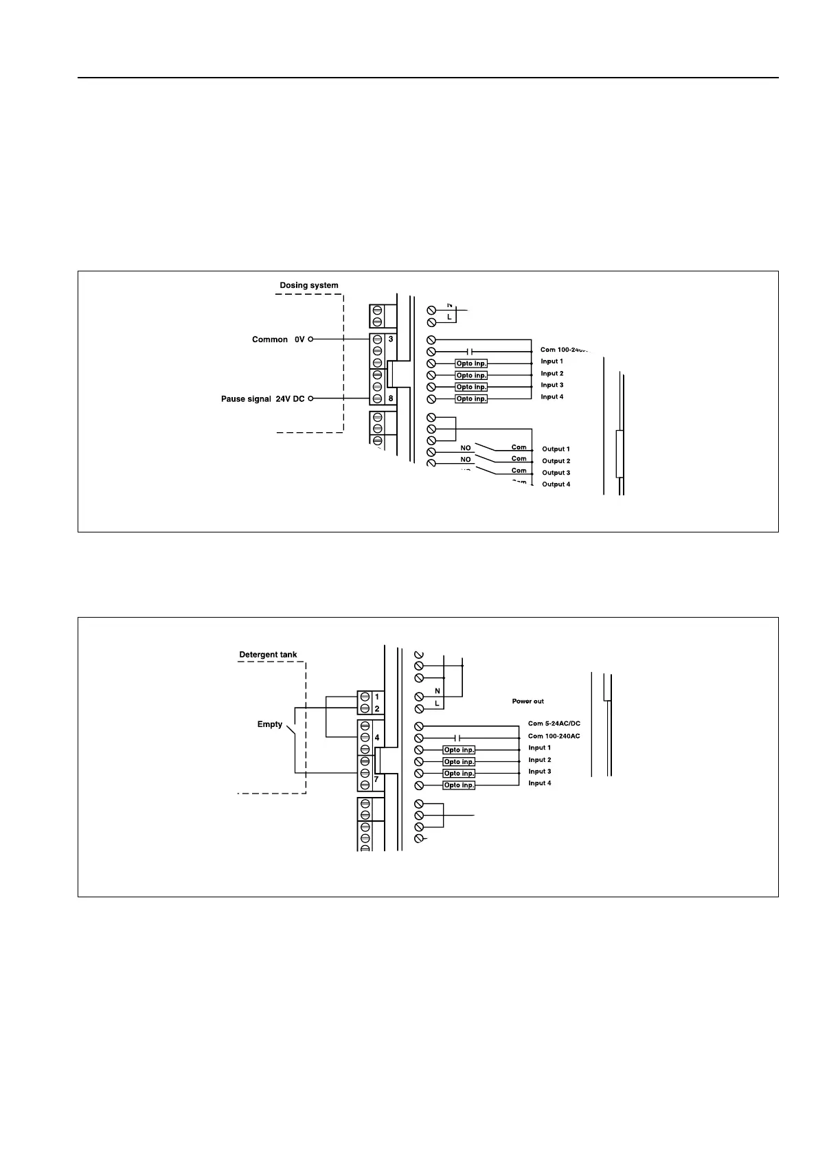 Connection 7. If this is connected, an error message will be displayed if any of the chemical tanks are empty. The pro-