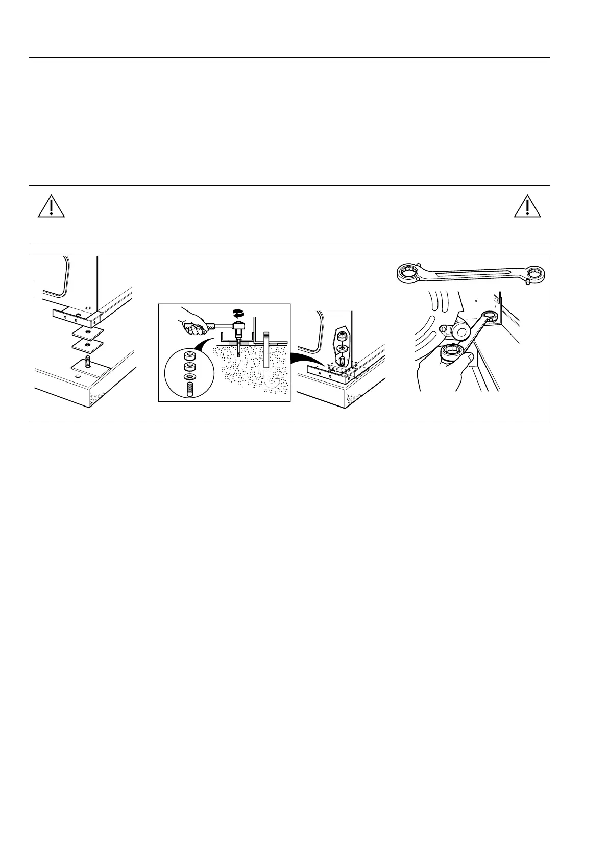 square spacers (t = 4 mm) over the two holes. They shall be placed between the machine and foundation. Insert the