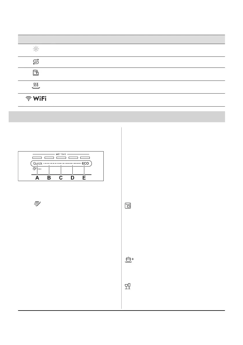Drying phase indicator. It is on when you select a programme with the drying phase. It flash‐