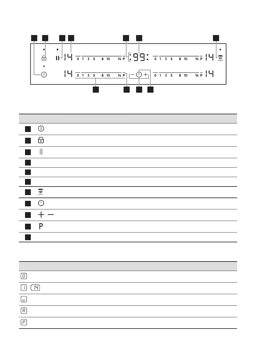 Tænd / Sluk Tænder / slukker for kogesektionen.