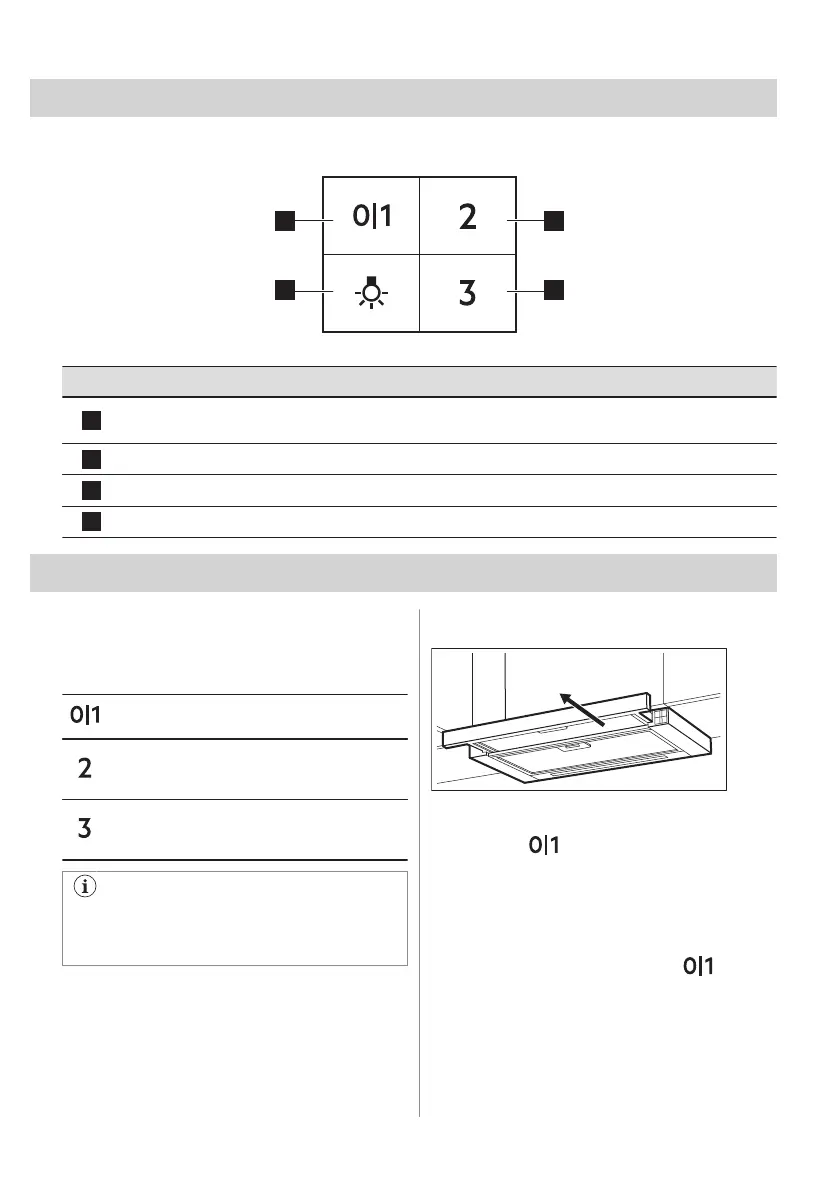 Prima velocità / Off La ventola passa al primo livello di velocità. La seconda pressione