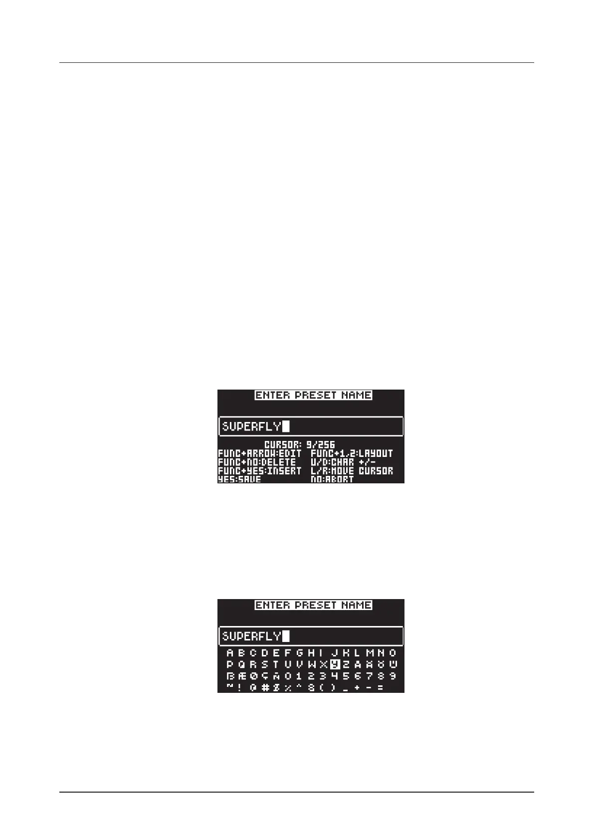 digits. Press and hold the [FUNC] key when you are on the NAMING screen to access the Pop-up