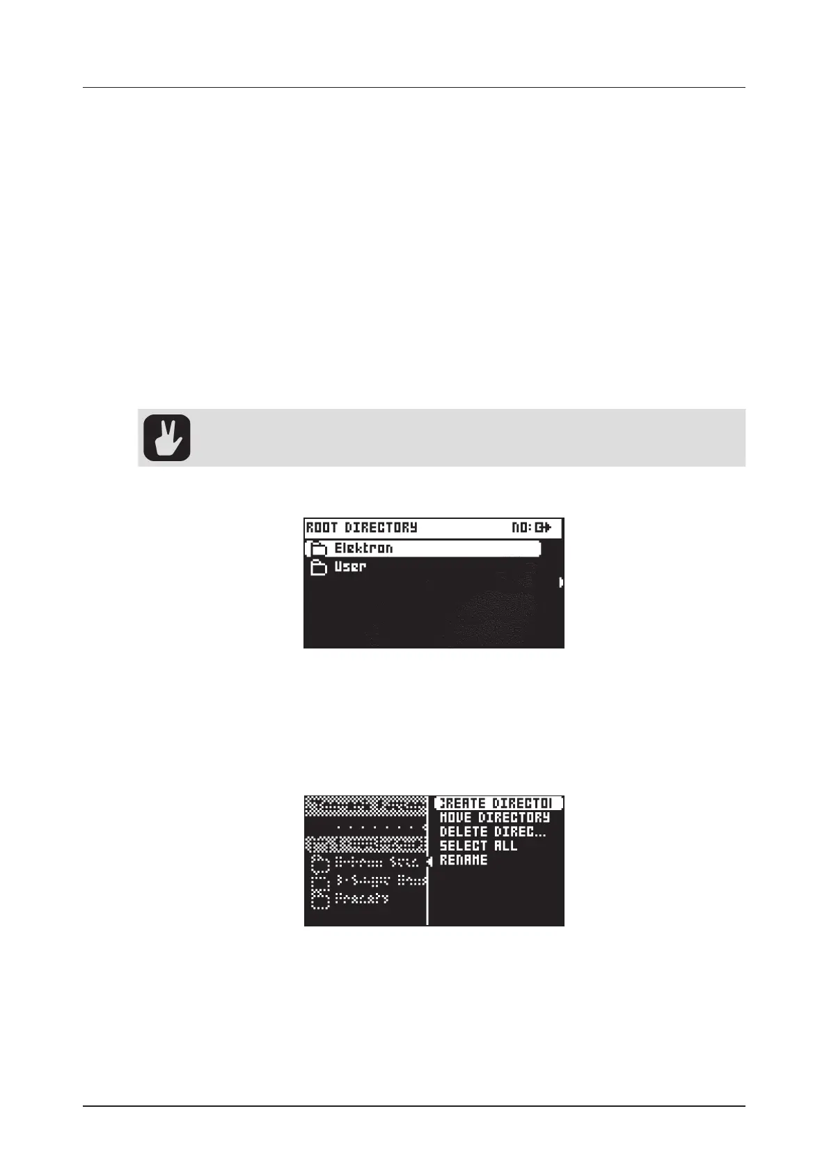 and back one step up in the directory structure, press [NO] or [FUNC] + [LEFT]. Press and hold [NO] to