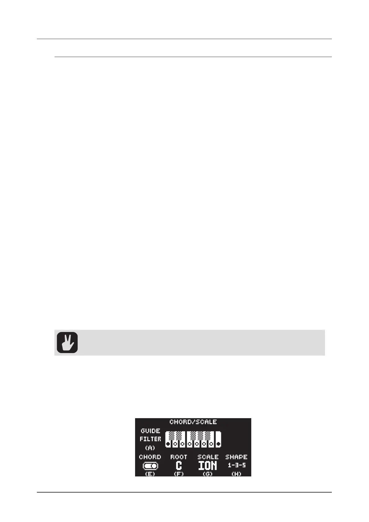 Press [CHORD] to open the CHORD/SCALE SETUP menu. Here you get a graphical view of which notes