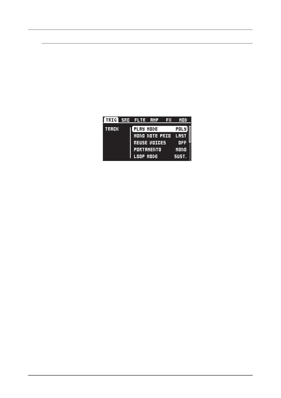 Here you can set several note and trig-related parameters. Press [FUNC] + [TRIG] to directly access this
