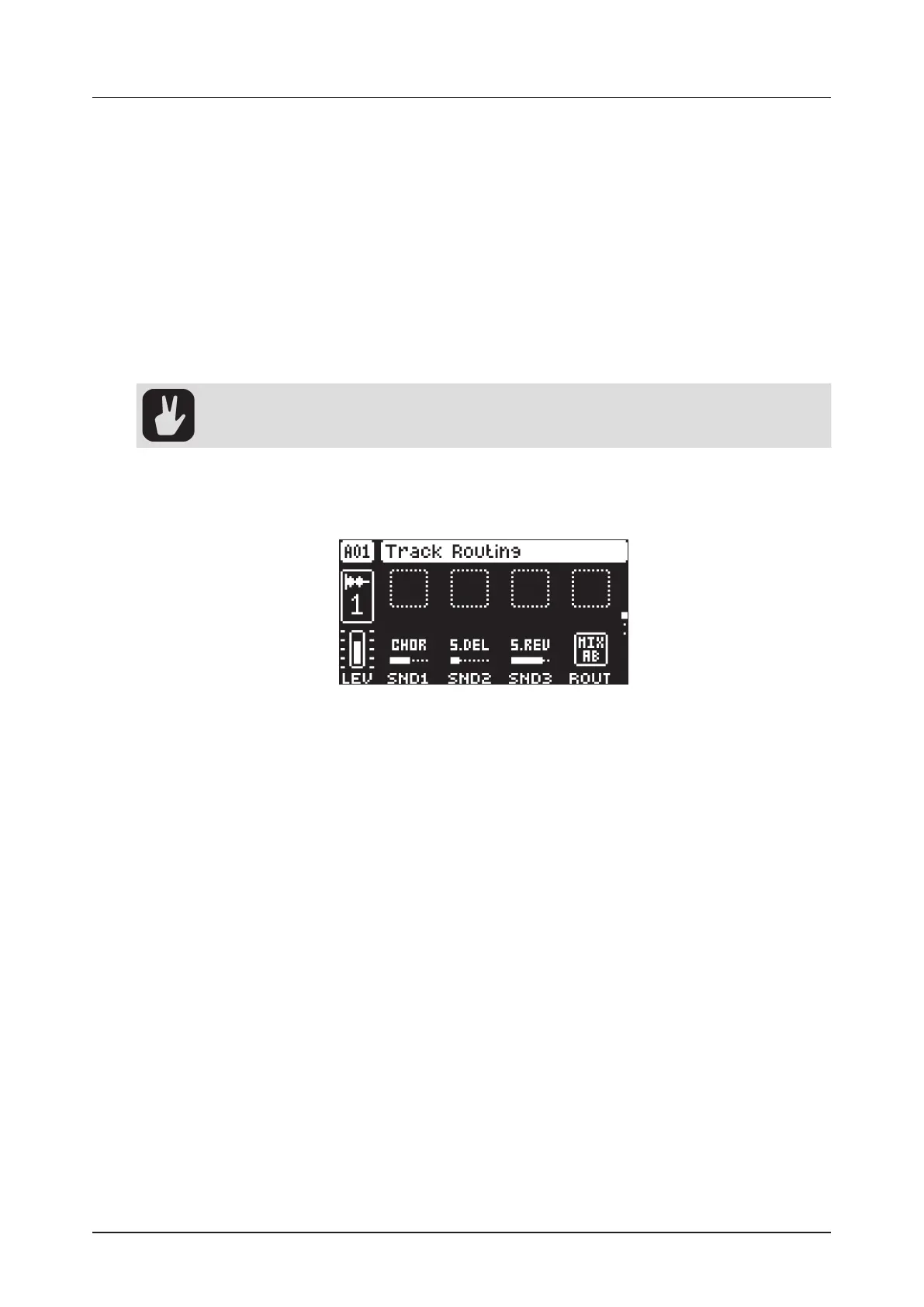 The FX parameter page 1 contains parameters that sets the routing of the track and the send levels from