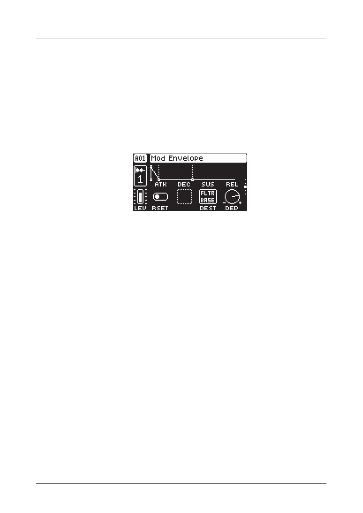 Depth sets the depth and polarity of the Mod Envelope modulation. Both negative and positive modula-