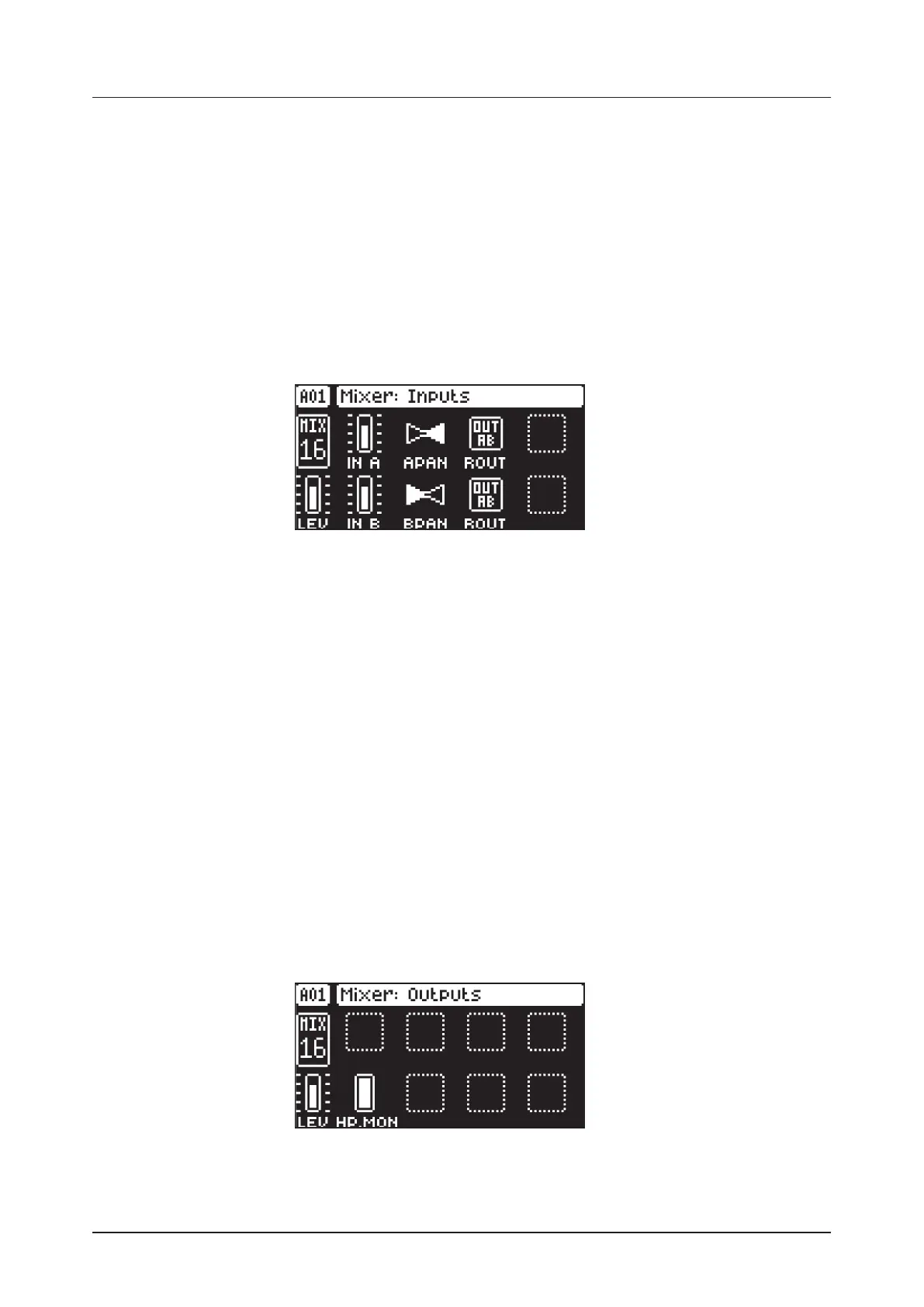 • OUT AB routes the audio to the AB outputs and the Headphones without going through the Mixer