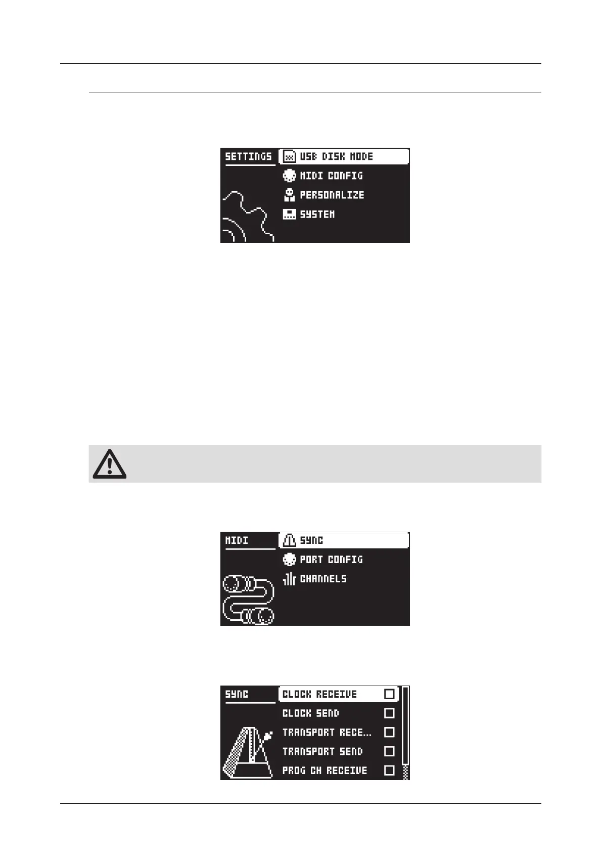 Controls how Tonverk receives and sends MIDI clock and transport commands. Change settings by