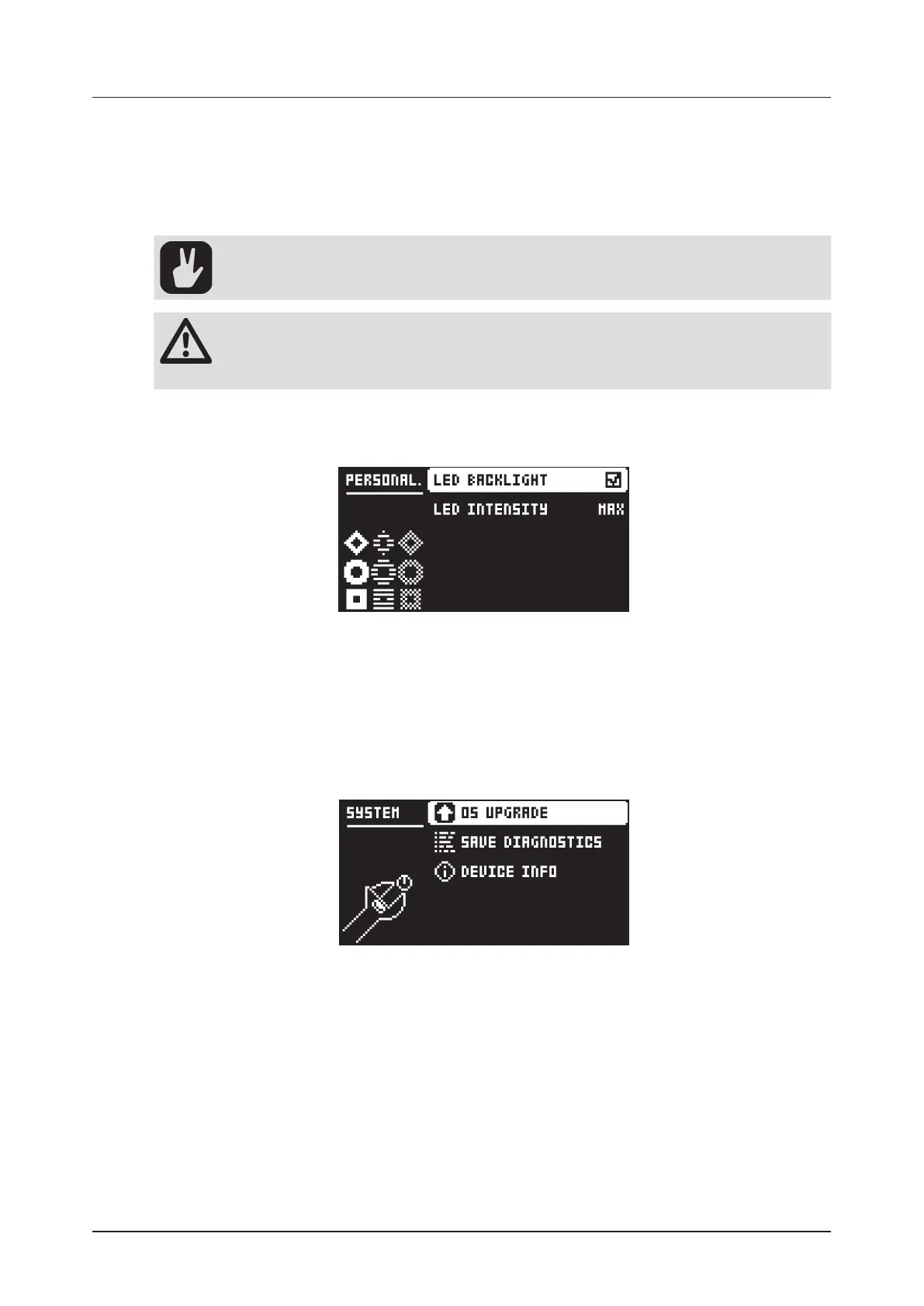 Use this menu option to upgrade the Tonverk OS. If there is a new version of the Tonverk operating sys-
