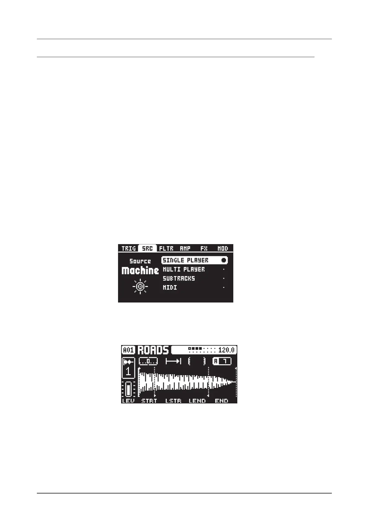 The Single Player machine plays a selected sample (mono or stereo) linearly (forward, reversed, or