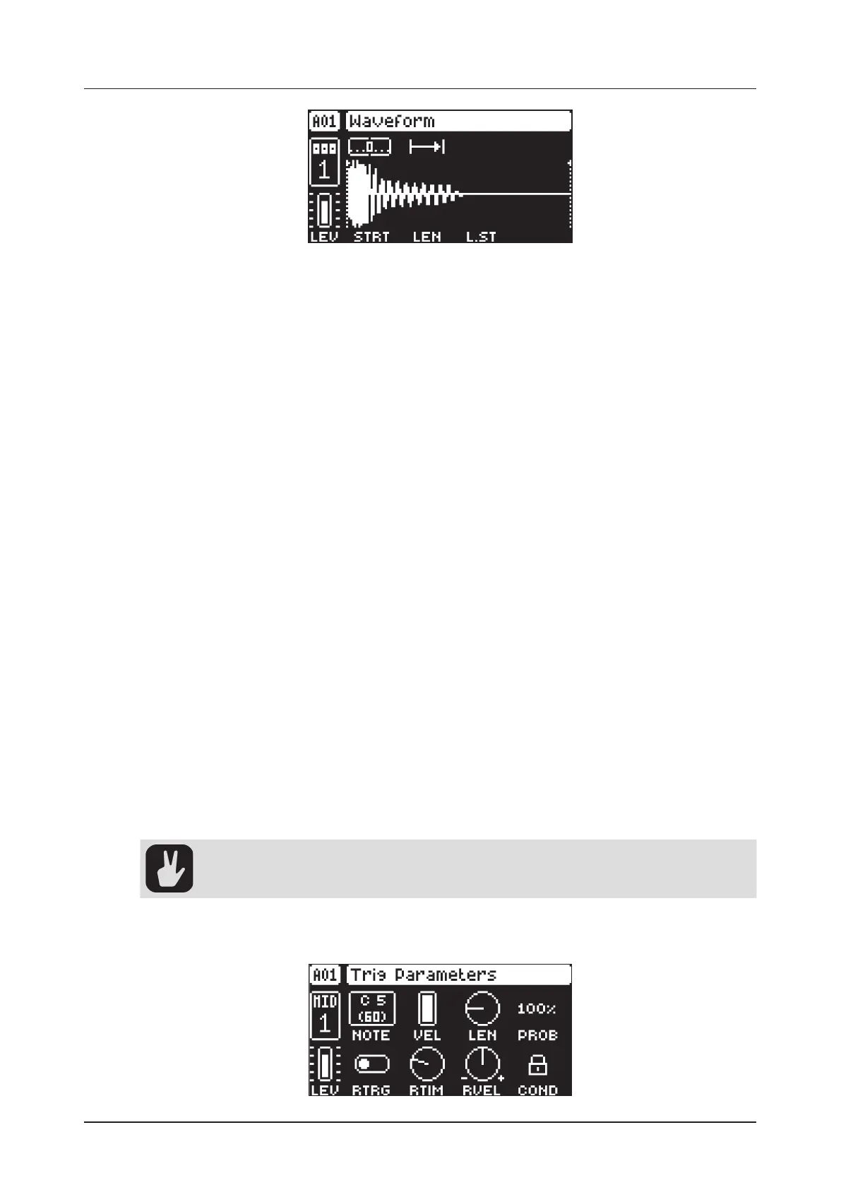 Set the actions for when a note is trigged. Change settings using the DATA ENTRY knobs. These