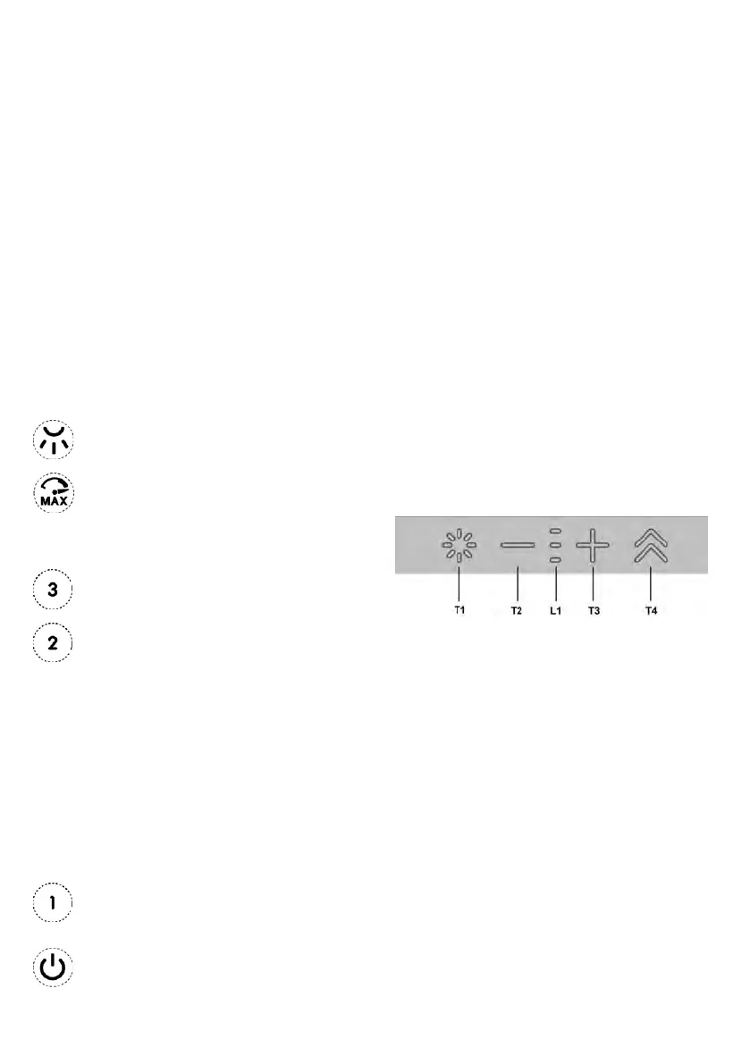 For å velge ventilatorhettens funksjoner er det tilstrekkelig å