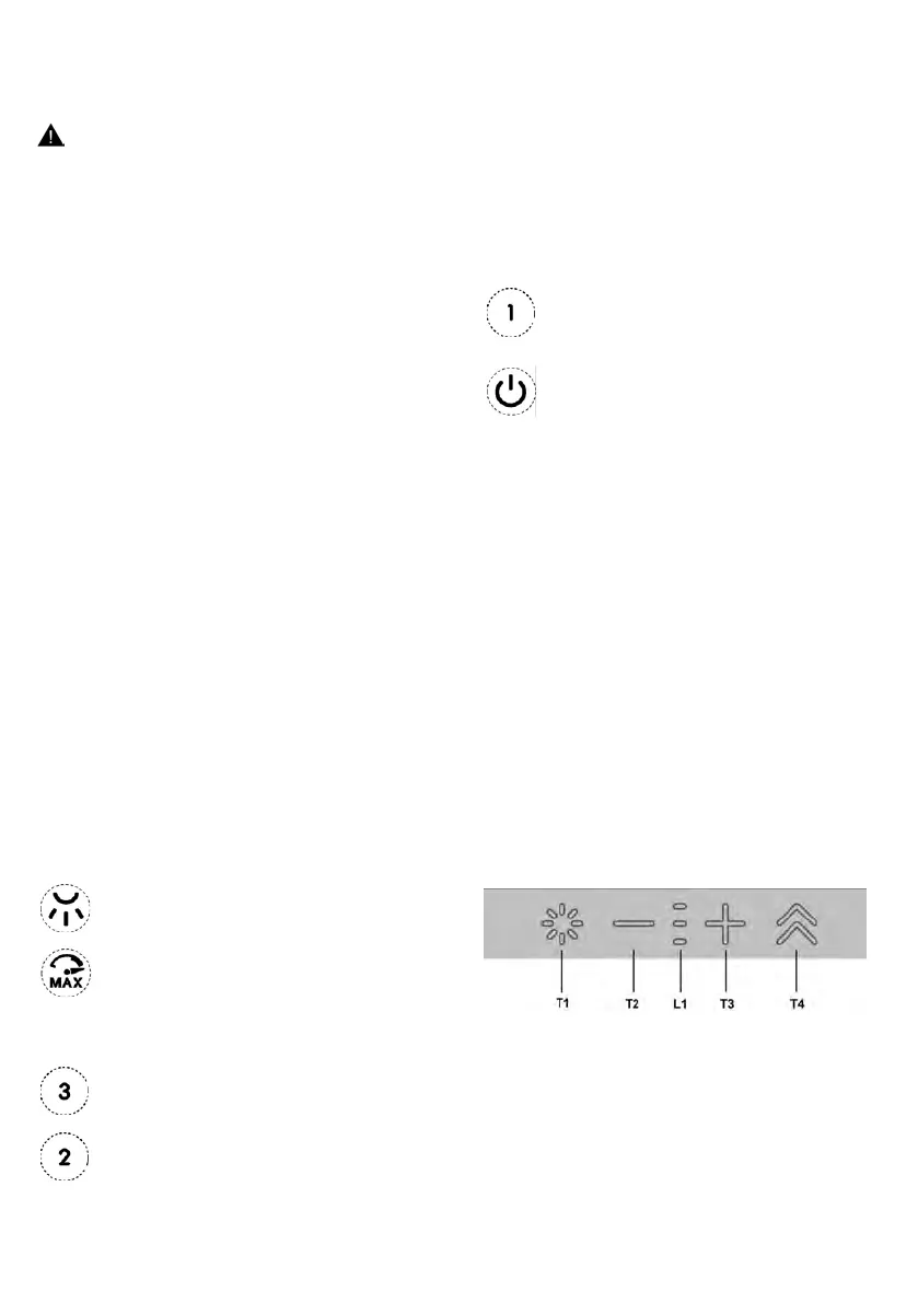 Tryk på tasten i 3 sekunder; emhættens