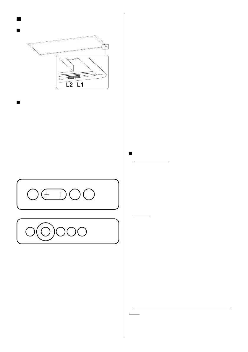 hotte avec les deux voyants L1 et L2 clignotants de couleur