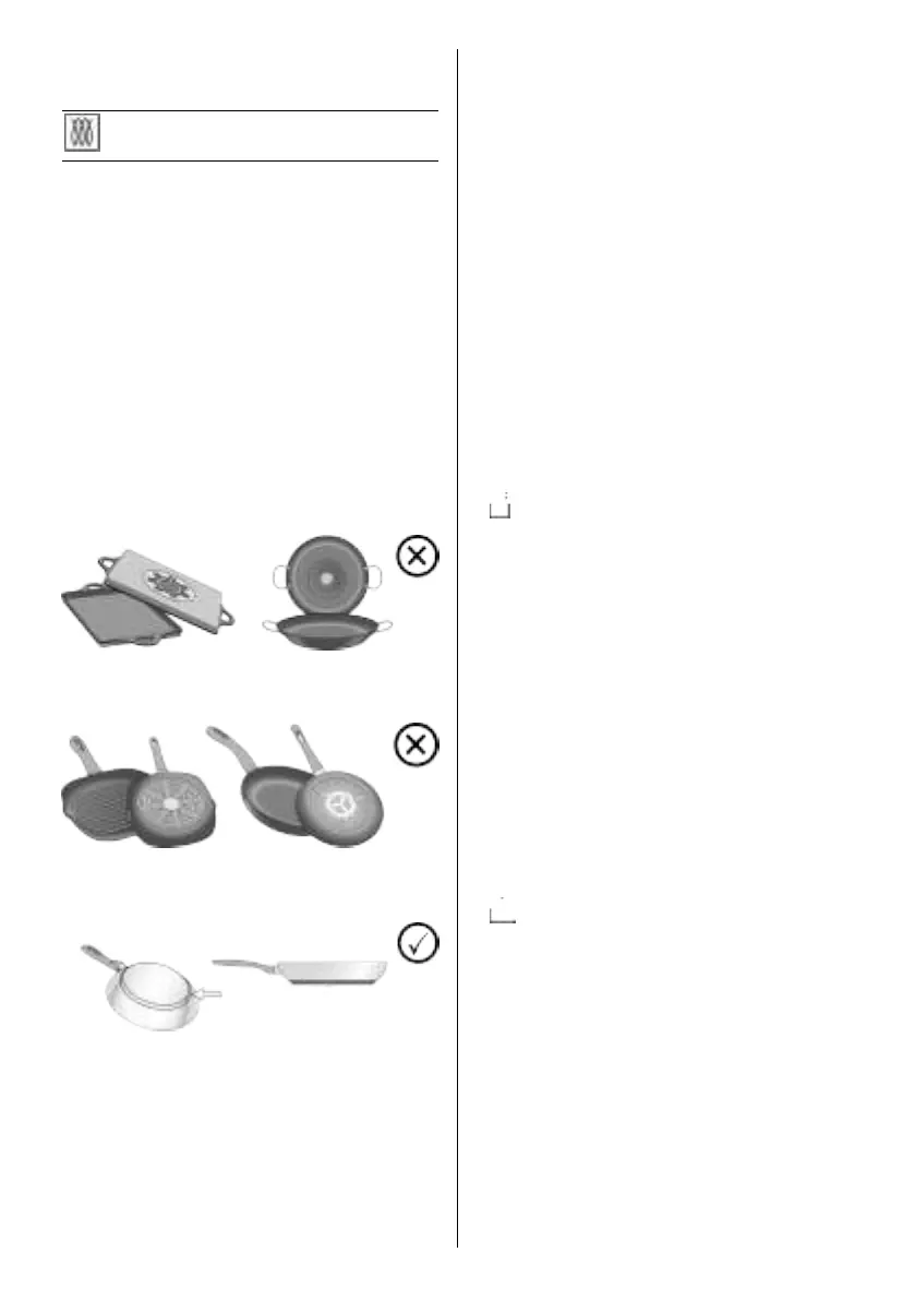 Csak lapos aljú edényeket és serpenyőket használjon; - Ha